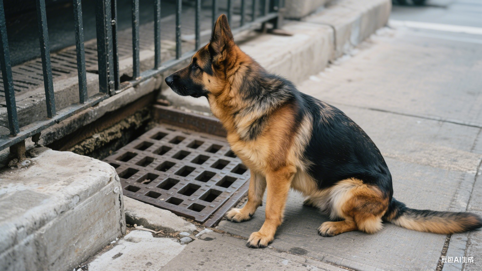 But a closer look reveals a deeper story. This German Shepherd doesn’t pace or whine restlessly like a dog chasing a scent. He sits perfectly still, his haunches pressed to the concrete, his body rigid with focus. His amber eyes are locked on the gaps in the grate, not darting around but fixed, as if he’s staring at a memory only he can see. Sometimes he’ll tilt his head, just a fraction, like he’s listening to a sound that’s too faint for human ears—maybe the drip of water inside the drain, or the rustle of leaves that had washed in during the last rain, or something else, something only his dog’s senses could detect.